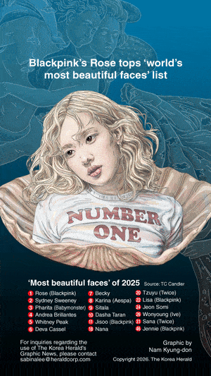 ![[Graphic News] Blackpink’s Rose tops ‘world’s most beautiful faces’ list](https://wimg.heraldcorp.com/news/cms/2026/01/14/news-p.v1.20260114.c4f2293cc9f242b28eb2286fa951afa3_T1.gif)