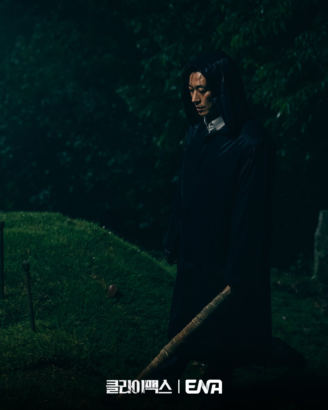The newly released stills offer a glimpse into the atmosphere of the premiere episode. In one scene, Bang Tae Seob stands in front of a grave at night under the pouring rain. Meanwhile, Bang Tae Seob’s wife Chu Sang Ah (Ha Ji Won) is seen wearing a complicated expression, revealing the inner conflict of someone navigating a world entangled with power and competing interests.