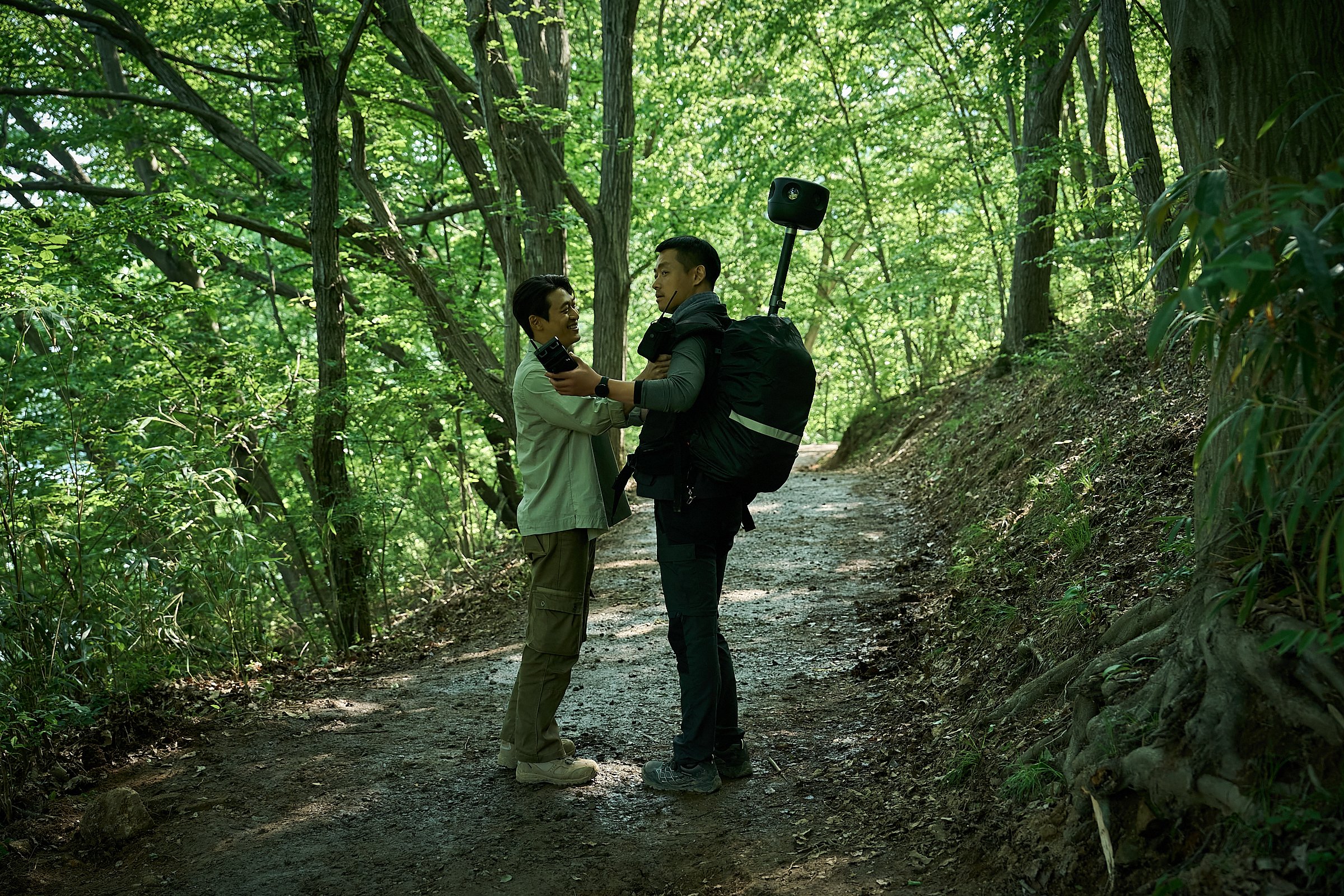 The newly released stills capture the emotional turmoil experienced by the brothers, who initially dismiss the strange rumors surrounding Salmokji but soon confront true terror. Kyung Tae is seen carrying a 360-degree panoramic camera for road-view filming while Kyung Joon looks after him with a smile, showcasing their strong brotherly bond. However, their hardened expressions as they enter a forest path hint at the beginning of something ominous.